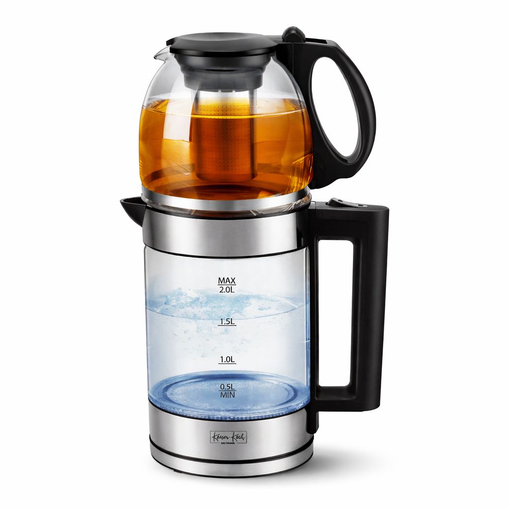 Pratique et élégante, cette théière électrique permet de chauffer jusqu’à 2 litres d’eau tout en infusant 1 litre de thé simultanément. Son corps en verre transparent offre une visibilité parfaite sur le niveau d’eau et l’infusion, tandis que sa poignée ergonomique assure une prise en main confortable. Idéale pour un usage quotidien, elle est parfaite pour préparer le thé en famille ou entre invités.