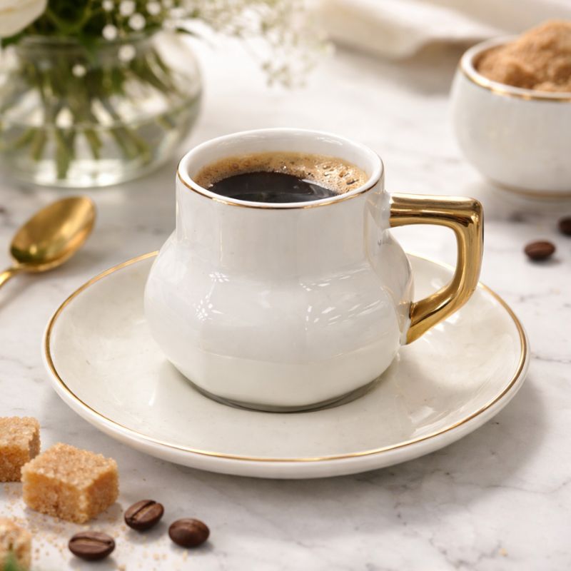 Élégante et raffinée, cette tasse à café en porcelaine blanche sublimée par des finitions dorées invite à un moment de dégustation tout en douceur. Son design délicat apporte une touche de luxe à votre pause café, idéale pour sublimer les instants du quotidien comme les occasions spéciales.