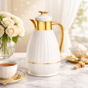 Alliant raffinement et fonctionnalité, cette verseuse isotherme au design blanc et doré apporte une touche de luxe à votre table.