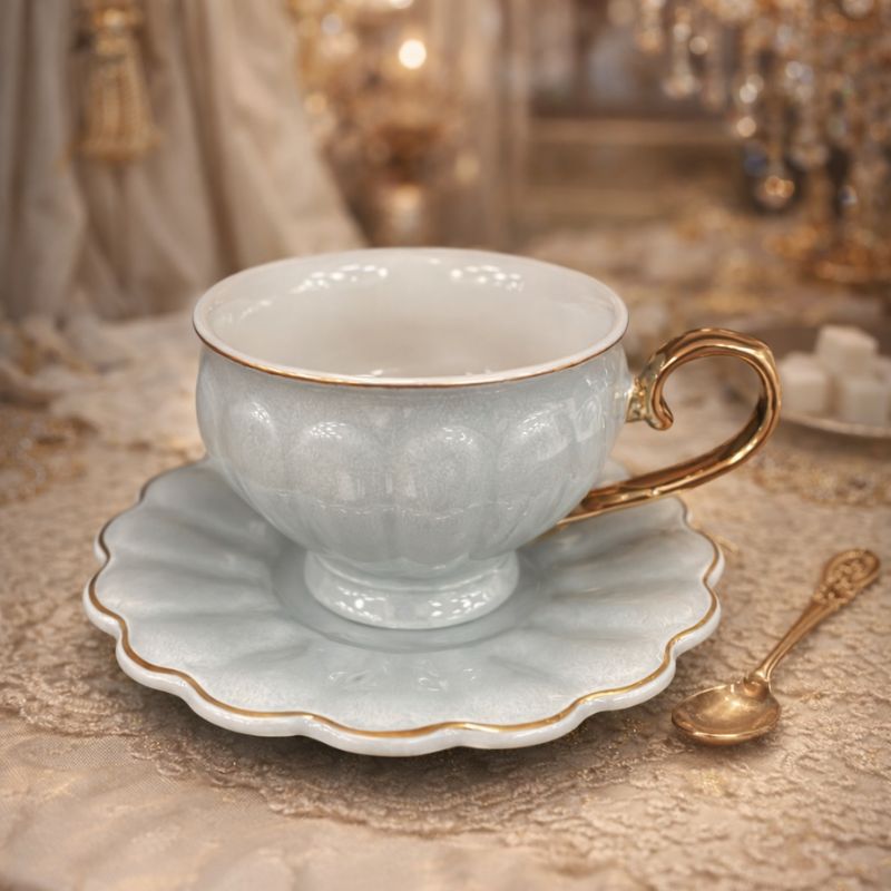 D’une élégance intemporelle, cette tasse à café en porcelaine délicatement texturée séduit par sa teinte douce et ses finitions dorées raffinées. Son design harmonieux, accompagné d’une soucoupe aux lignes ondulées, apporte une touche de luxe et de délicatesse à chaque instant de dégustation. Idéale pour sublimer vos pauses café ou thé, elle incarne le charme et le savoir-faire d’un art de la table d’exception.