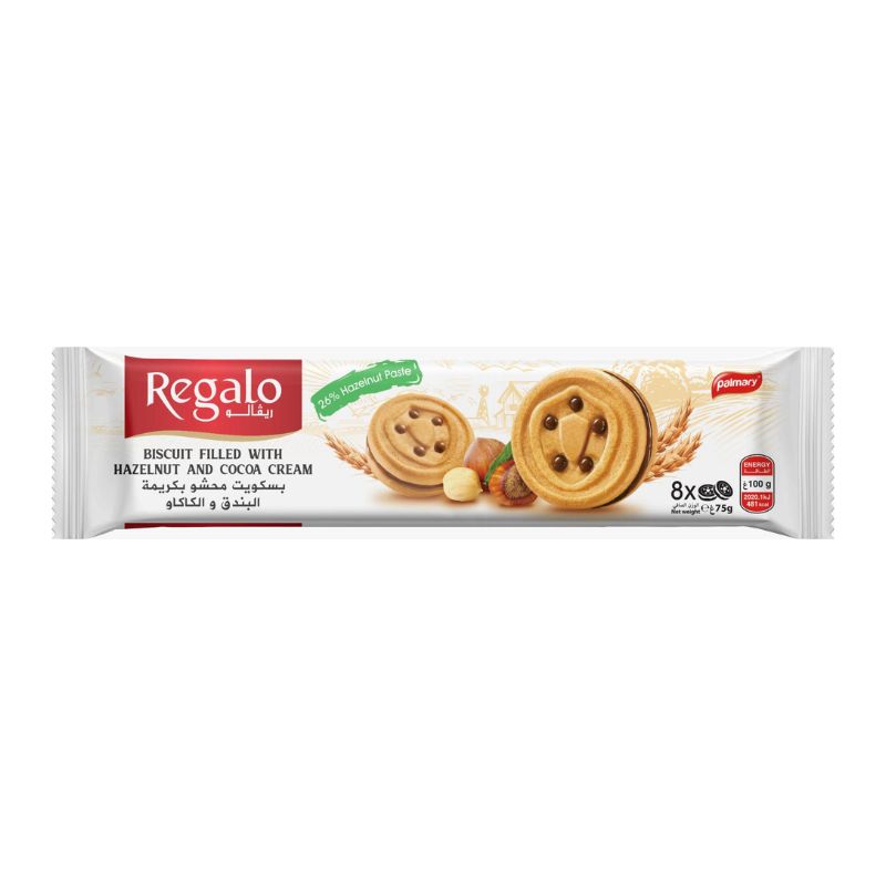 REGALO Biscuits à la crème de noisette et cacao 75 gr, vendu seul ou par lot de 6×75 gr.