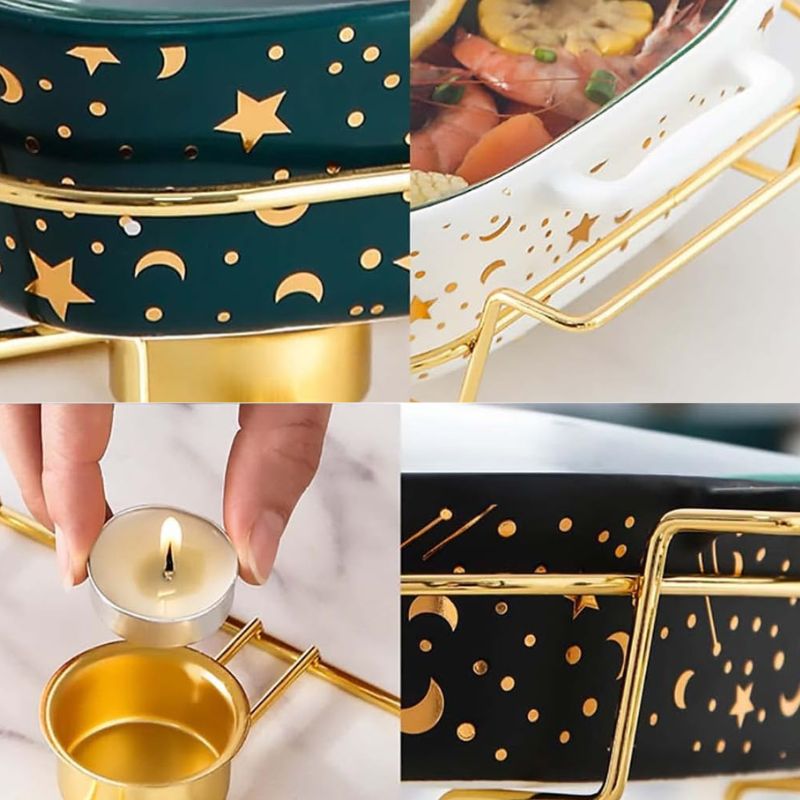 Disponible en 3 tailles et 3 coloris élégants, ce réchauffe plat en céramique allie esthétisme et praticité pour sublimer chaque repas entre amis d’une touche chaleureuse et raffinée.